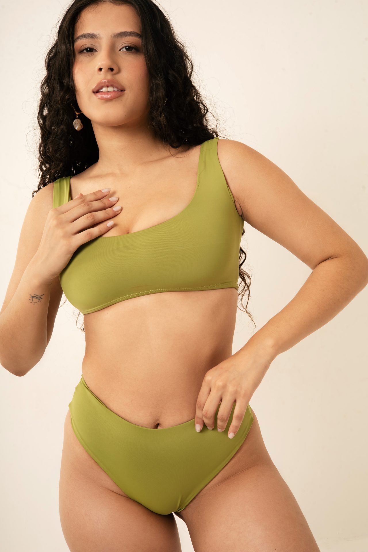 Top decote quadrado com alças largas. Composição 87% poliamida e 13% elastano. Produto com proteção UV. Modelo veste tamanho M.